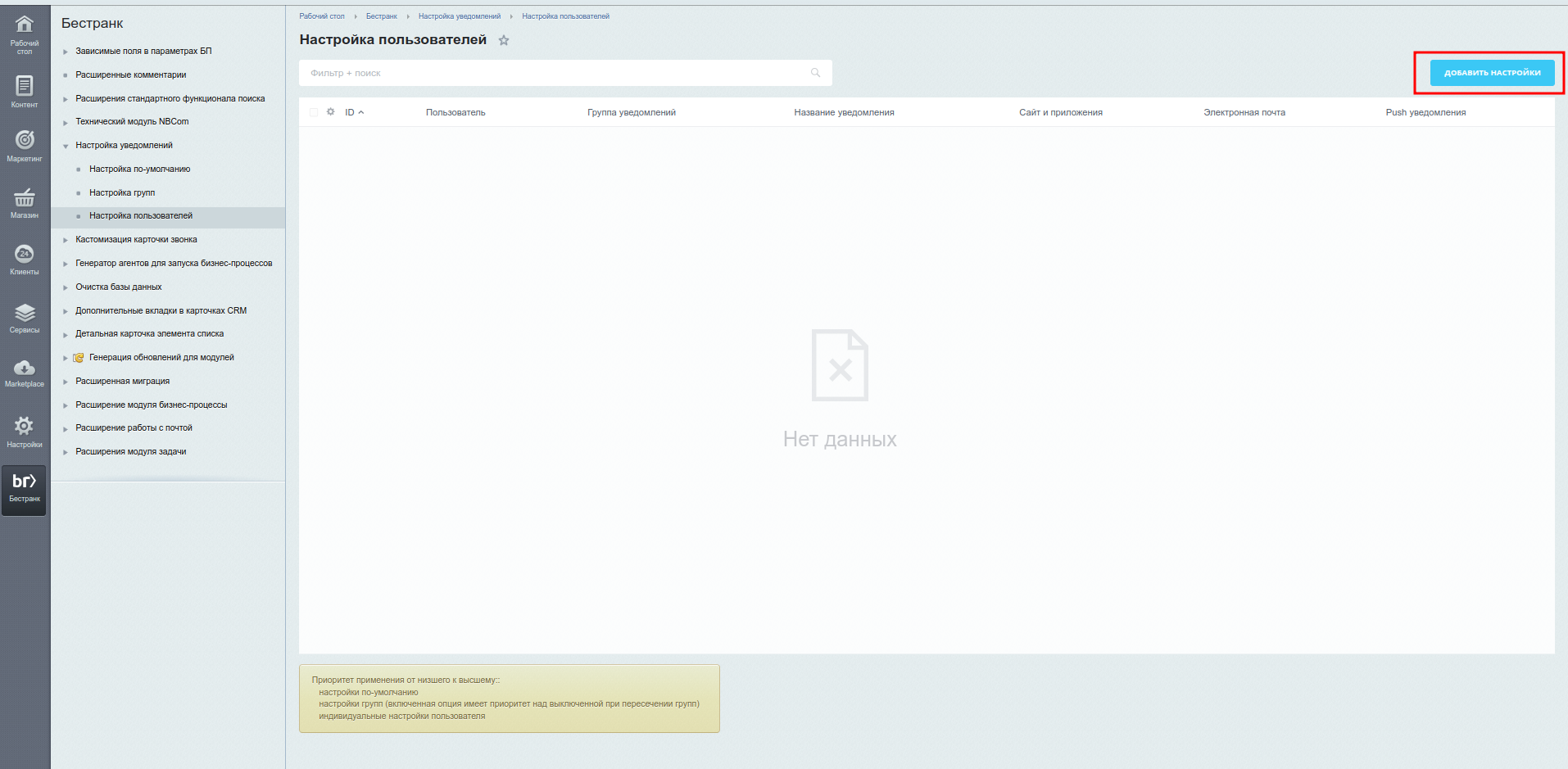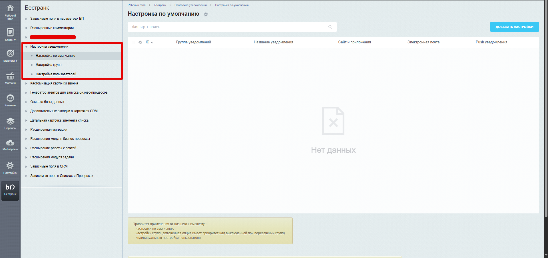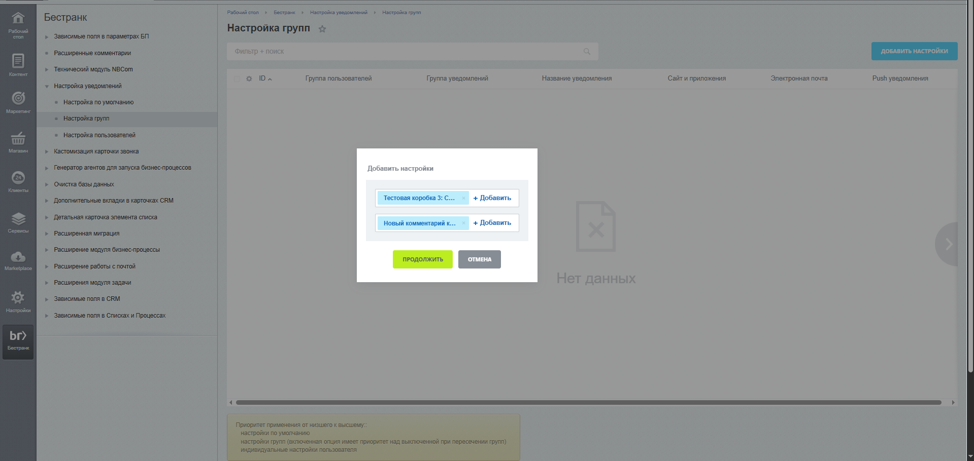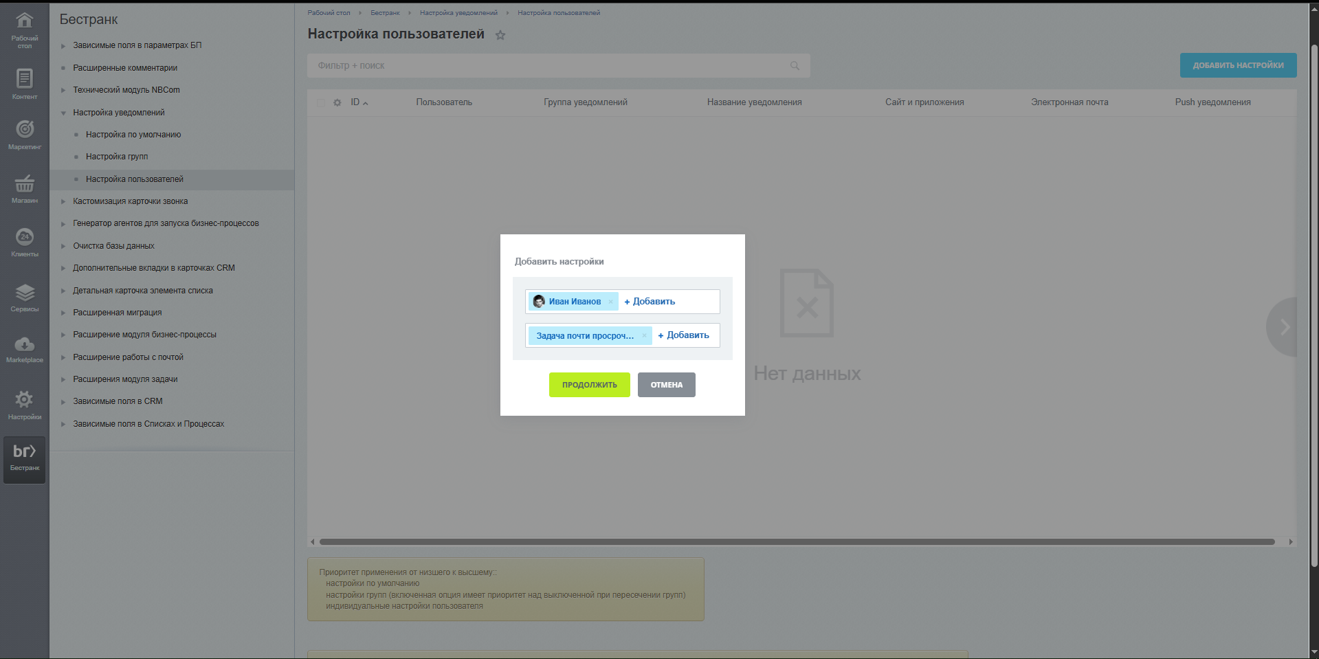 Он станет незаменимым инструментом, когда есть необходимость оградить, например, целый отдел сотрудников от получения ненужных уведомлений, или, наоборот, сделать так, чтобы ключевые сотрудники в обязательном порядке получали те или иные уведомления.