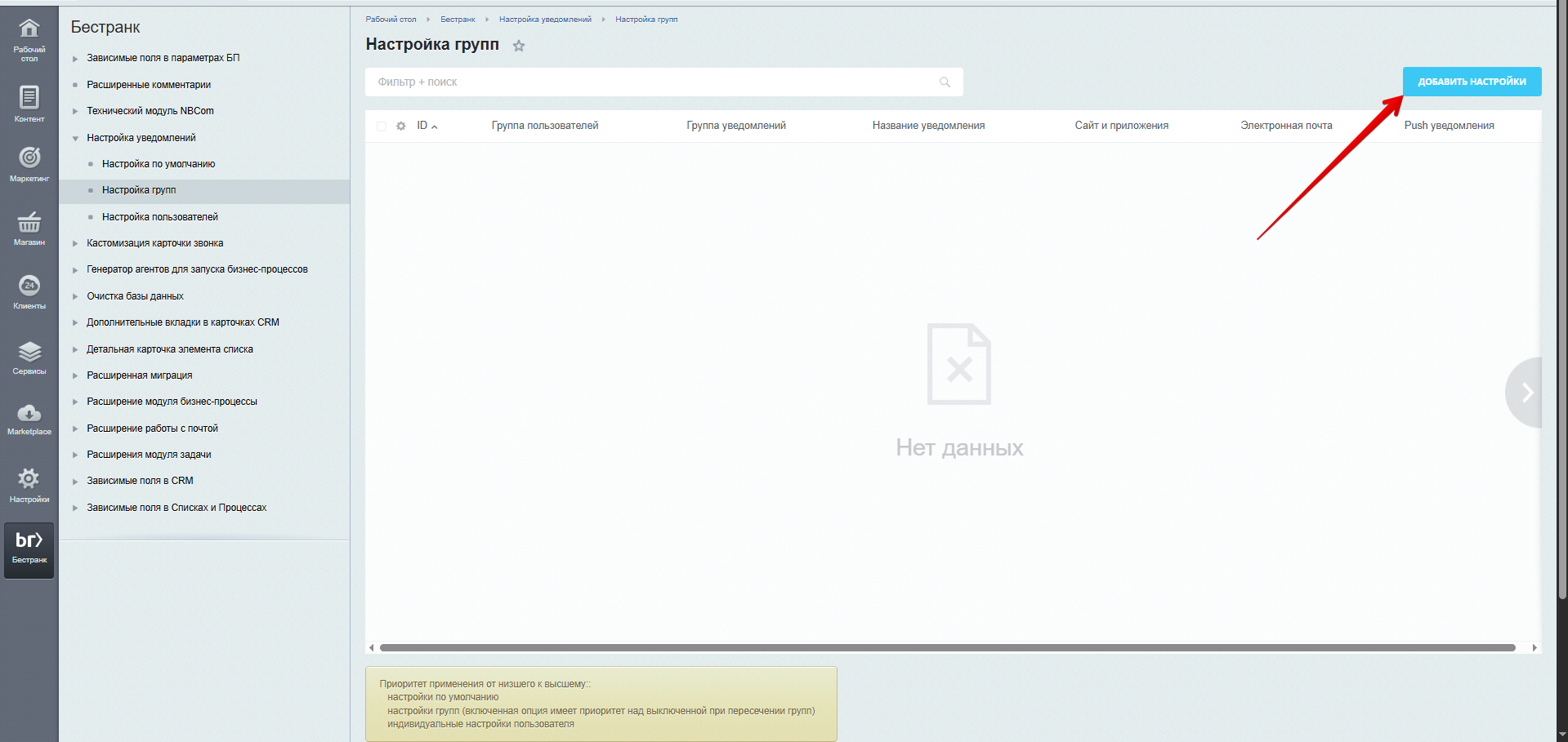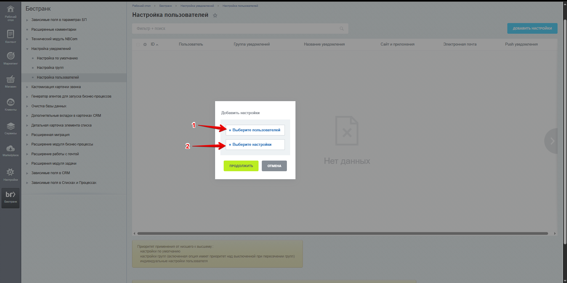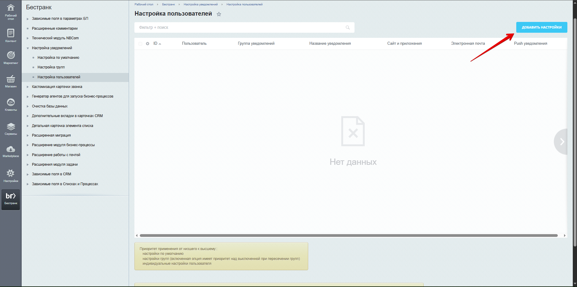 Он станет незаменимым инструментом, когда есть необходимость оградить, например, целый отдел сотрудников от получения ненужных уведомлений, или, наоборот, сделать так, чтобы ключевые сотрудники в обязательном порядке получали те или иные уведомления.