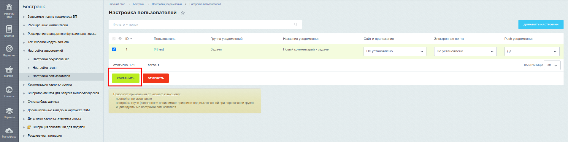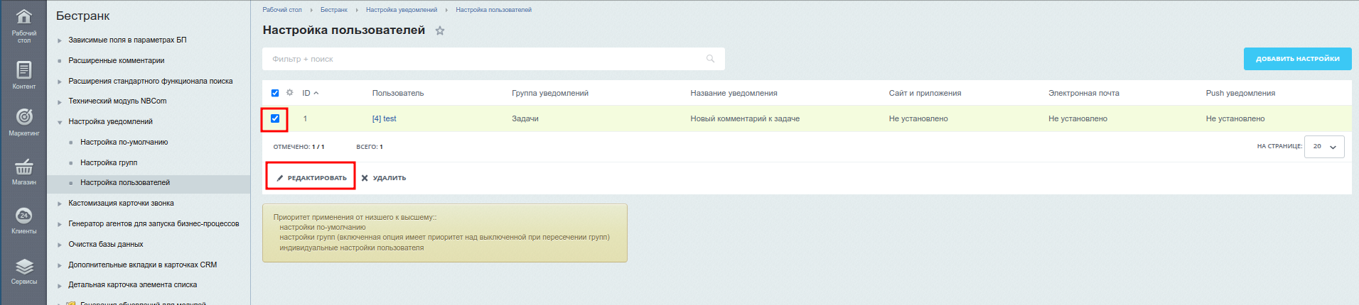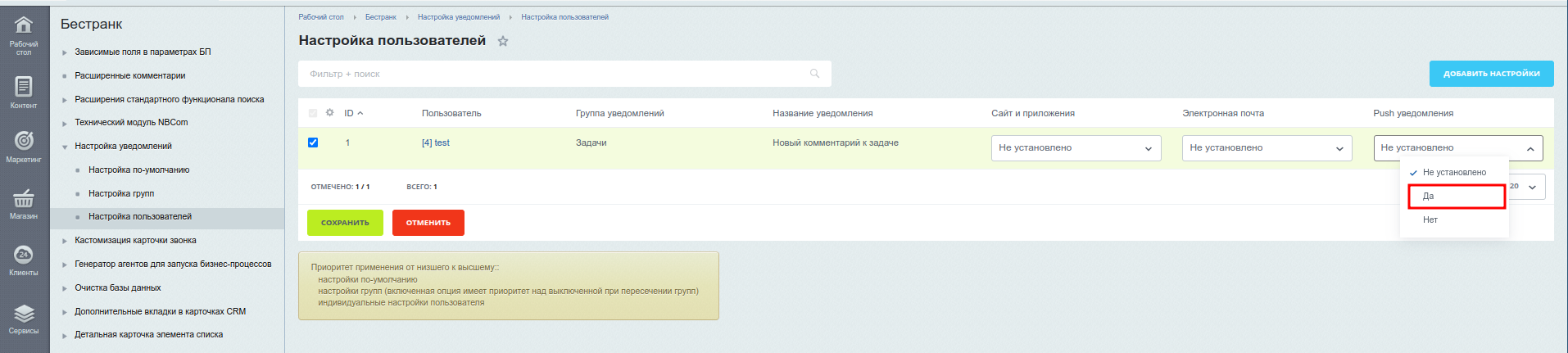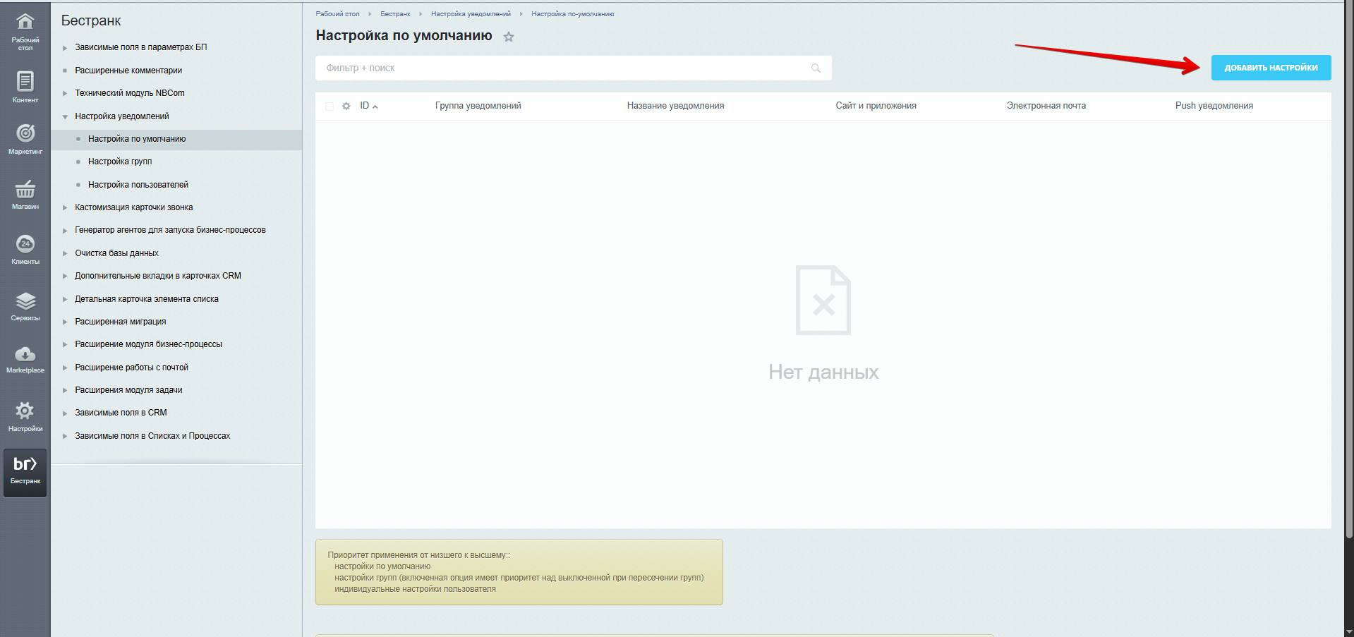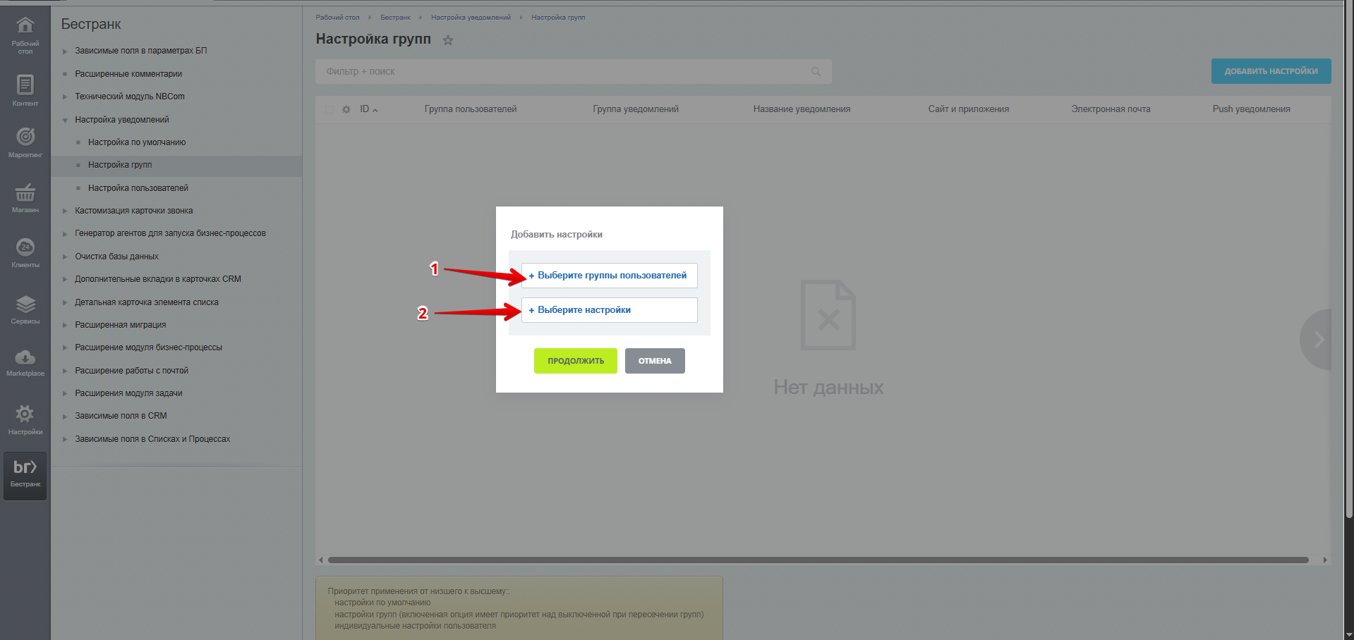 Он станет незаменимым инструментом, когда есть необходимость оградить, например, целый отдел сотрудников от получения ненужных уведомлений, или, наоборот, сделать так, чтобы ключевые сотрудники в обязательном порядке получали те или иные уведомления.