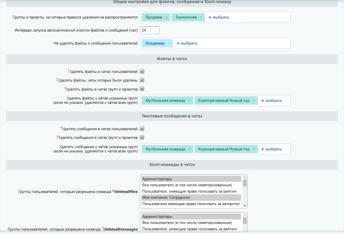 Модуль удаляет устаревшие текстовые сообщения или сообщения с файлами в чатах веб-мессенджера 1С-Битрикс24 (коробочная версия). Какие файлы считать устаревшими, указывается в настройках этого модуля.