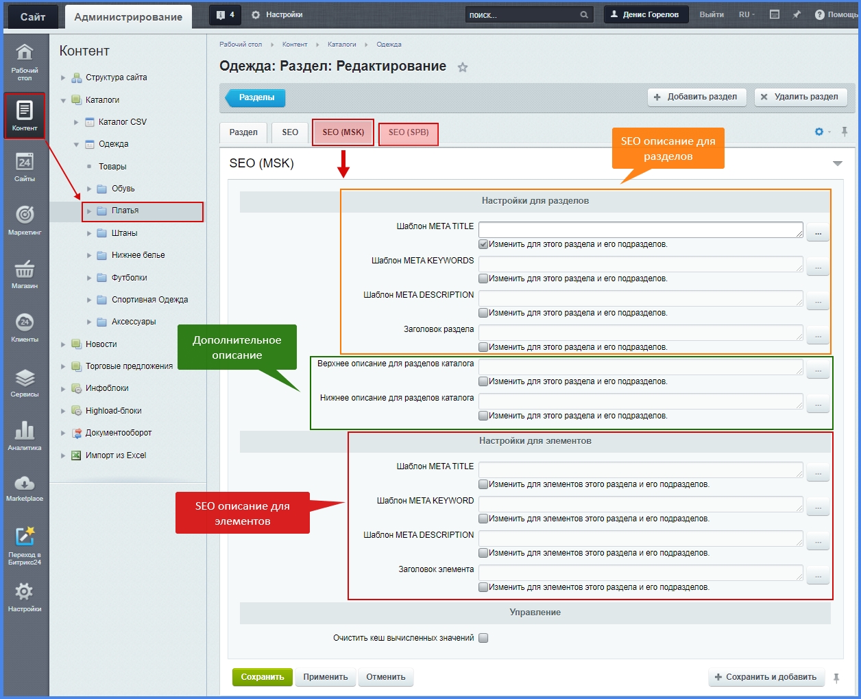 Модуль «SEO-поля у разделов, элементов для многосайтовости или мультирегиональности» - это помощник администратора или контент-менеджера интернет-магазина, модуль позволяет для элементов и разделов создавать шаблоны SEO данных для других сайтов или языков.
