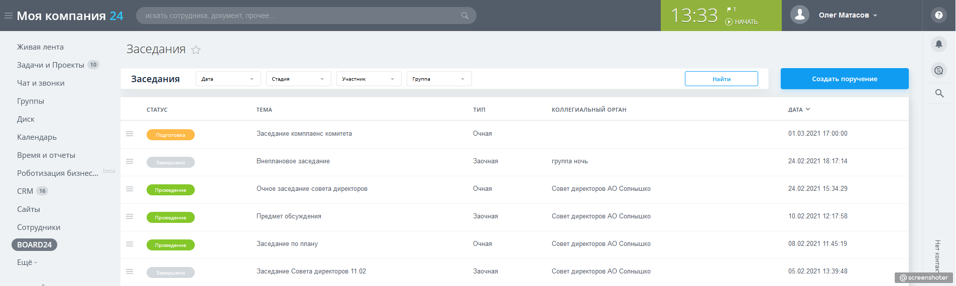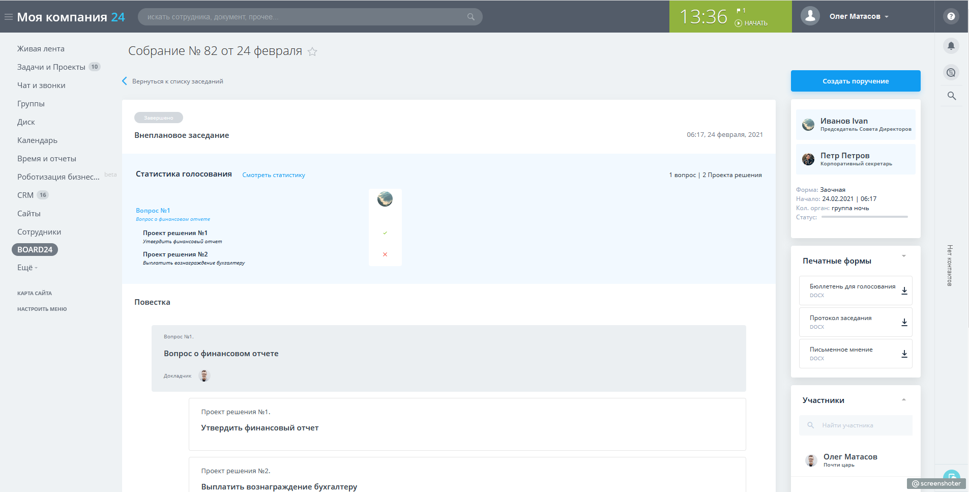 Board 24 – это цифровое решение по автоматизации бизнес-процессов, обеспечивающих деятельность совета директоров и менеджмента.