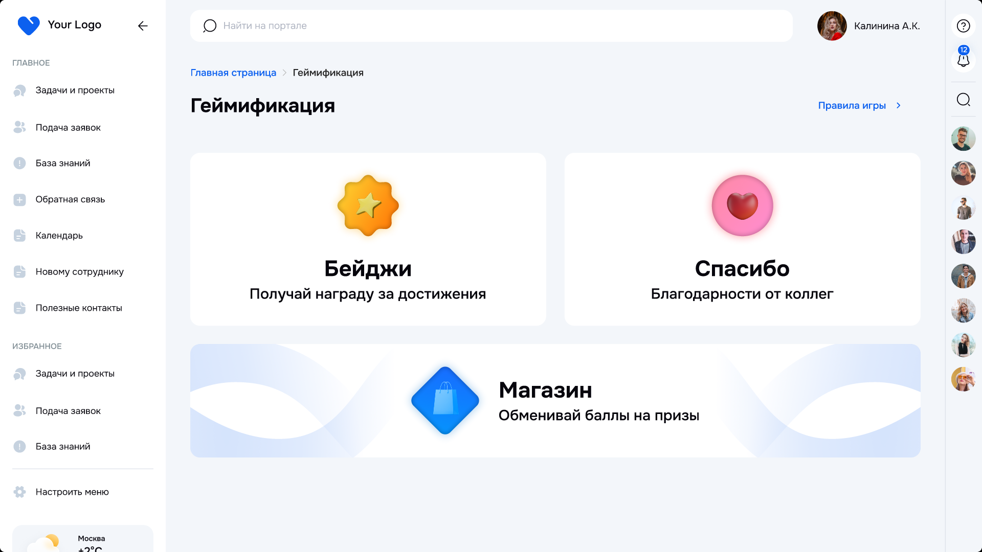 Внутренний магазин – это призовой фонд, который компания устанавливает для своих героев. Это может быть что угодно: от фирменного мерча до дополнительных выходных за счет компании Наиболее активные и эффективные сотрудники, собравшие нужное количество коинов, получают доступ к заслуженным подаркам.