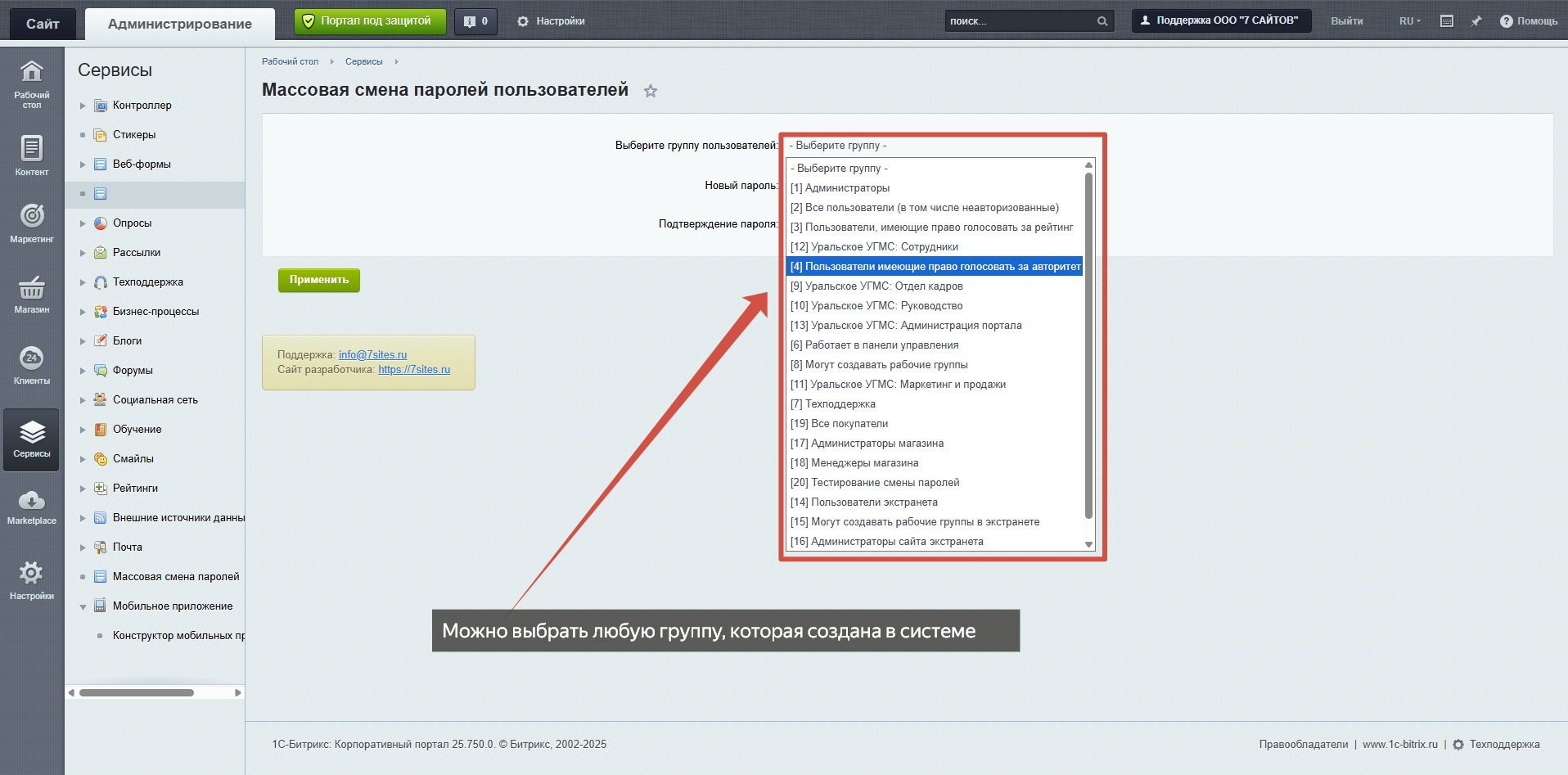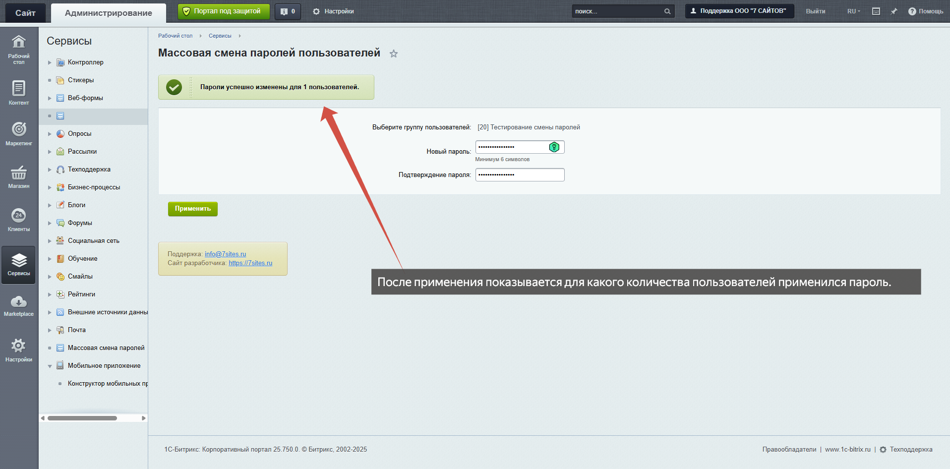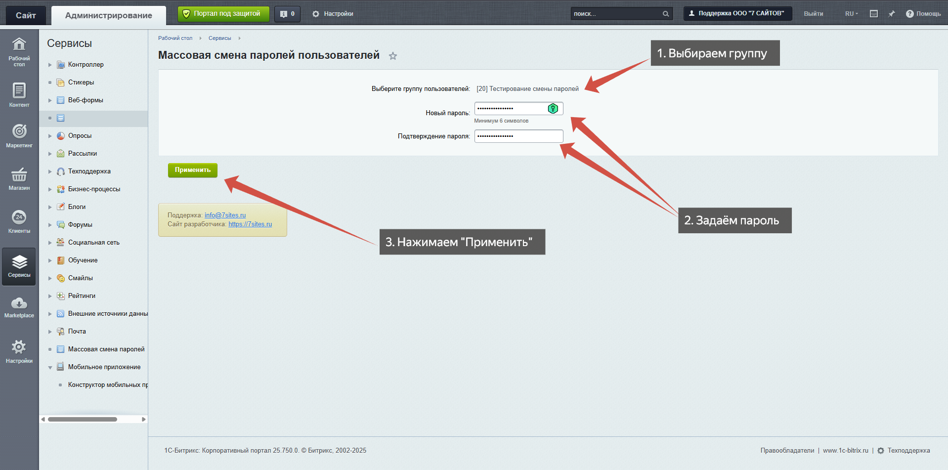 Нажмите «Применить» — система автоматически обновит пароли у всех активных пользователей выбранной группы
