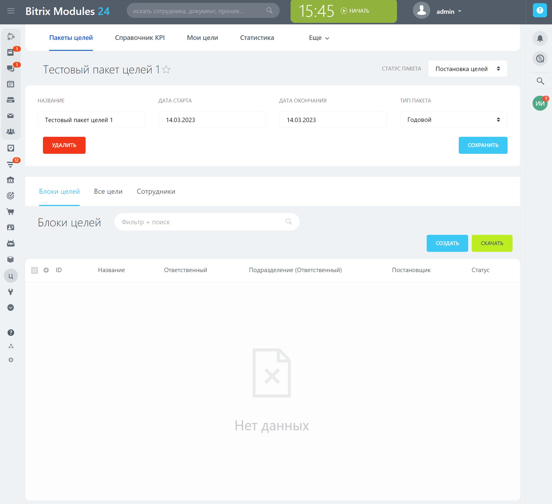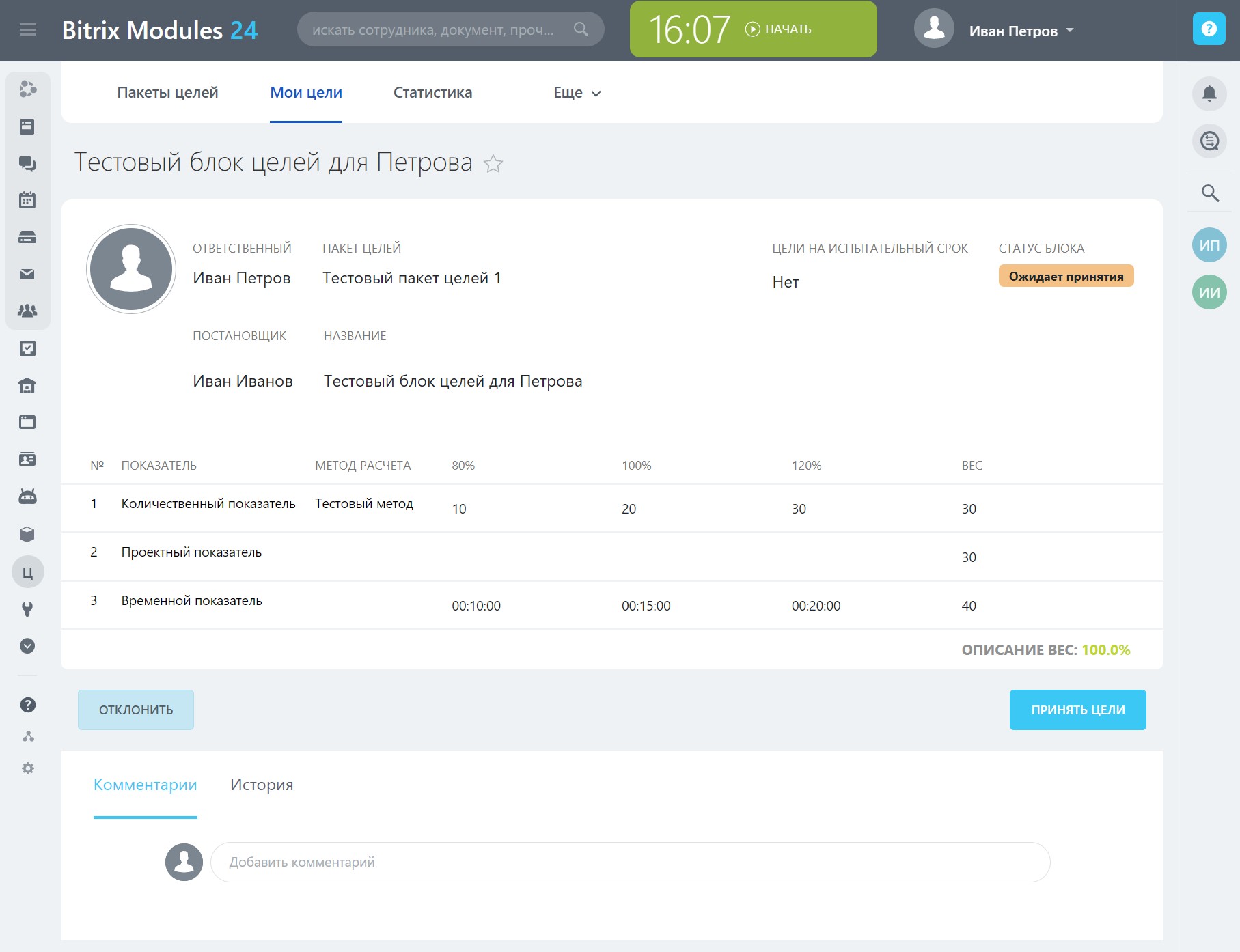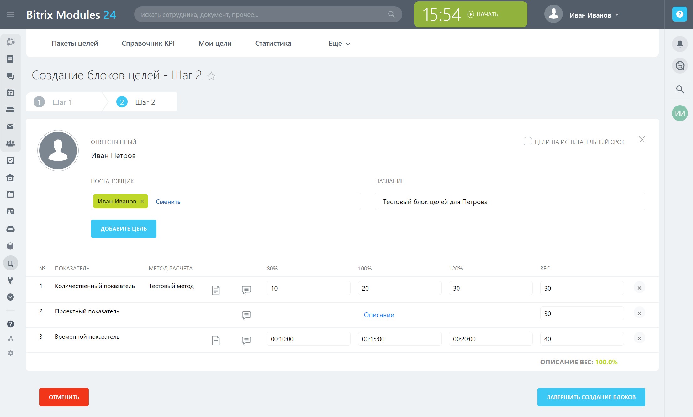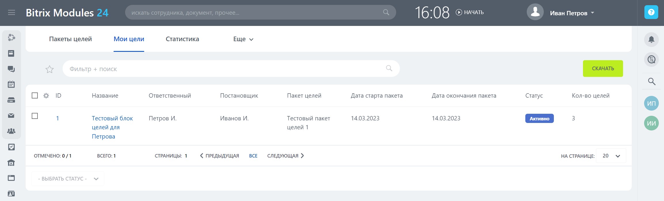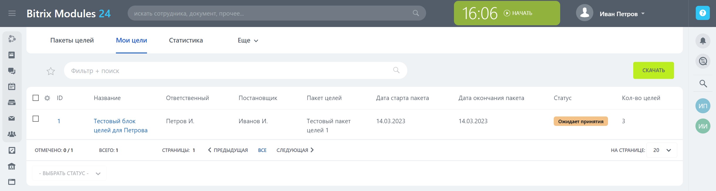 Модуль для Битрикс24, позволяющий ставить цели для сотрудников, с учетом сроков и удобной оцифровкой результата: