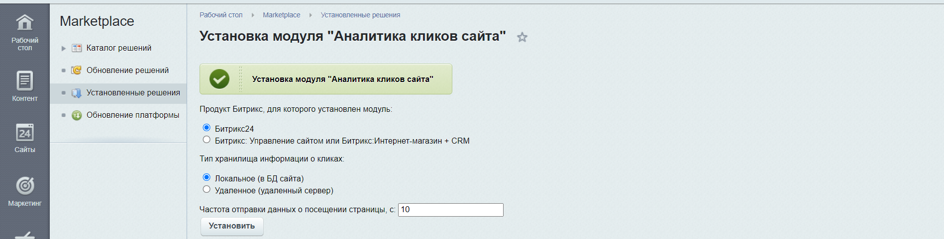 - о кликах пользователей сайта (как для лицензий Битрикс Управление Сайтов, так и для лицензий Битрикс24) на любых страницах за определенный период времени;