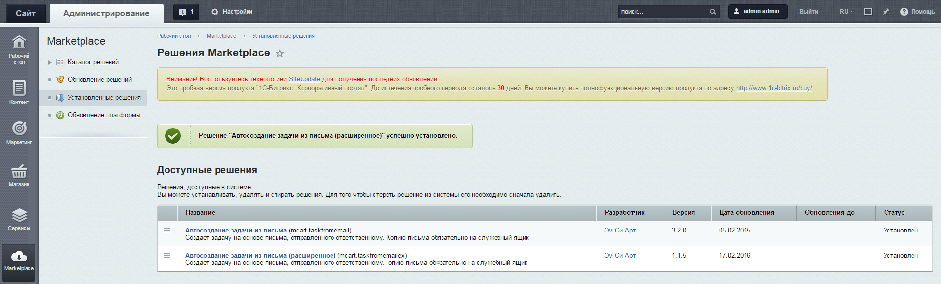 3. На основе отправленного письма модуль генерирует задачу на портале. Вложенные в письмо файлы прикрепляются к задаче.