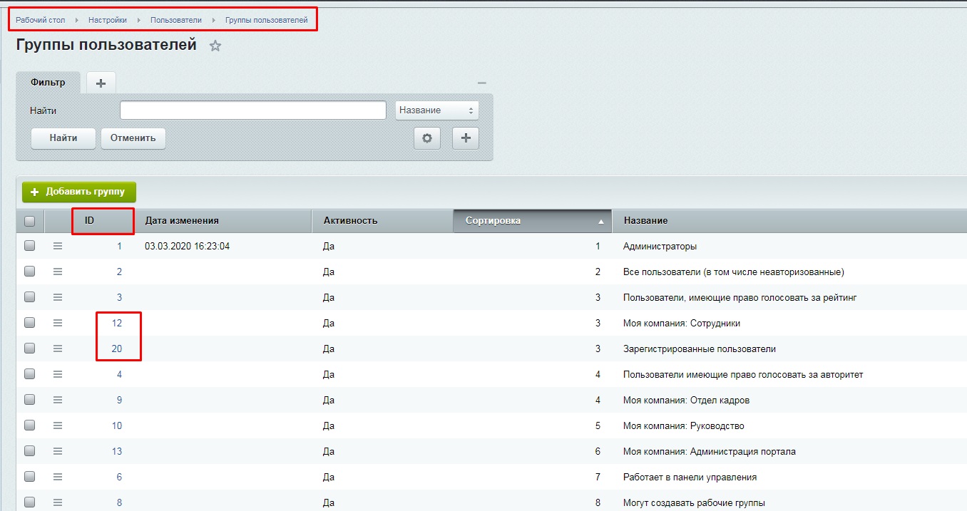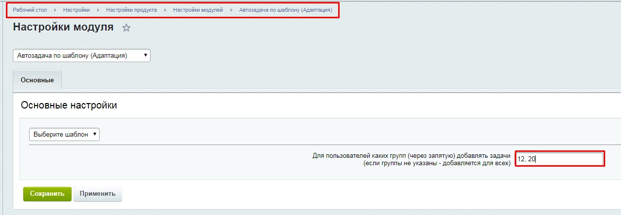 Также в настройках задайте ID системных групп пользователей (через запятую), для которых будет действовать создание задач. Если группы не указаны - задачи будут добавляться для всех групп.