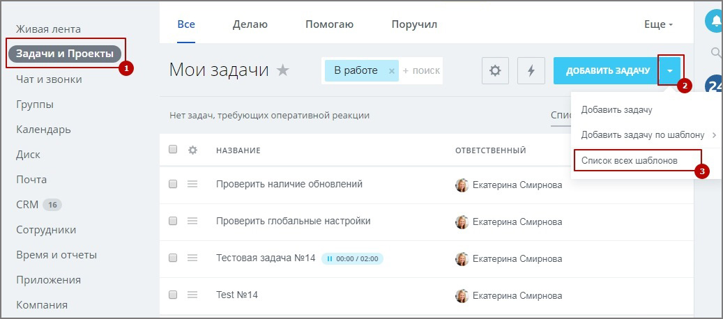 Теперь рассмотрим совместное использование «Автозадачи по шаблону» с модулем «Чат-бот для отправки уведомлений пользователям».