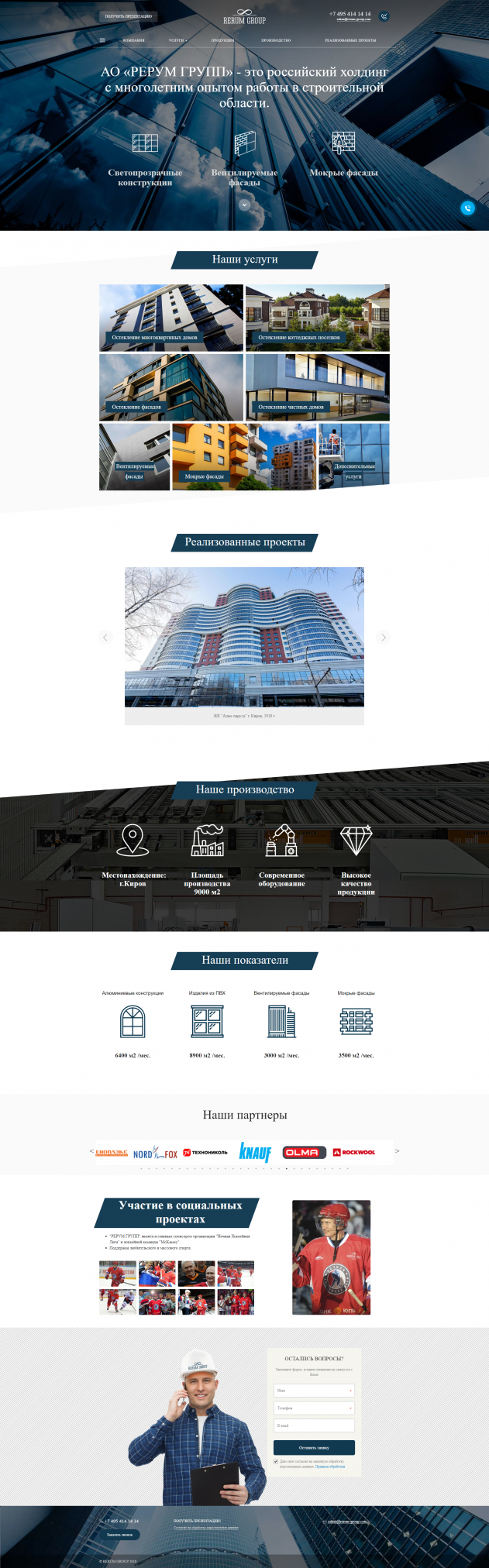 Также реализованы страницы: о компании, страница с контактной информацией, лицензии и сертификаты, страница о производстве.