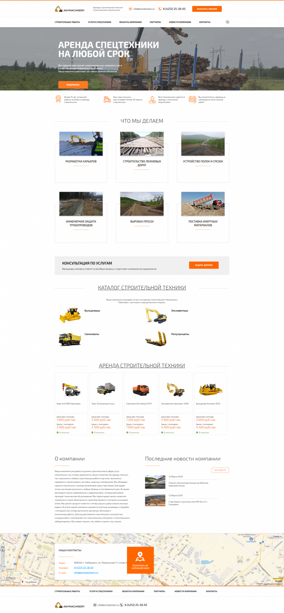 Также реализованы страницы: о компании, страница с контактной информацией, лицензии и сертификаты.